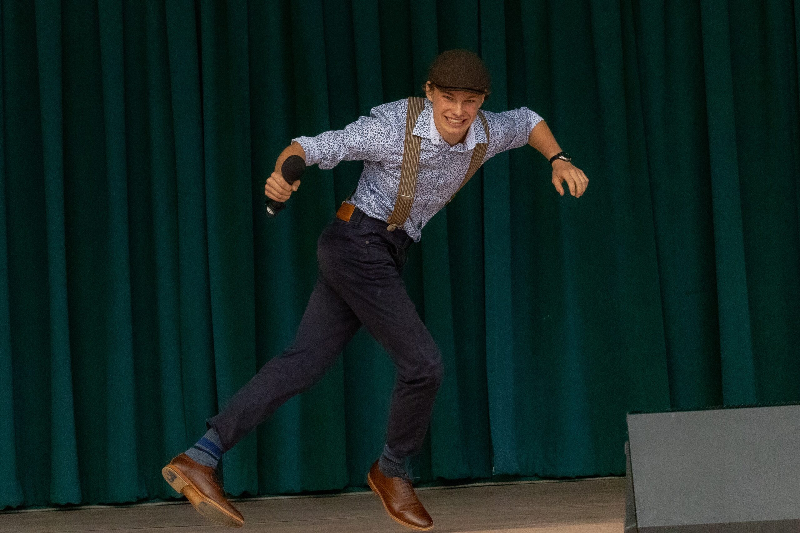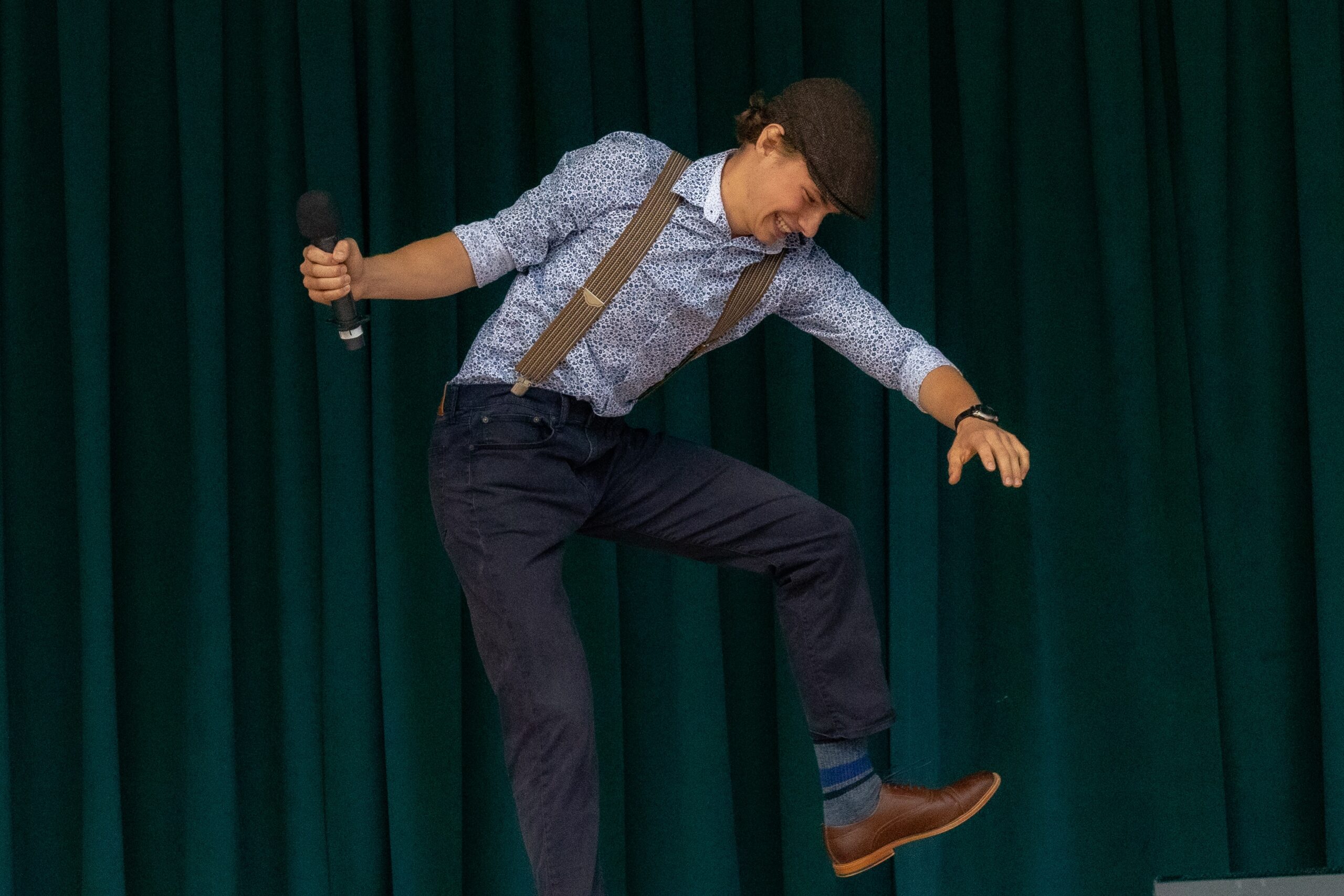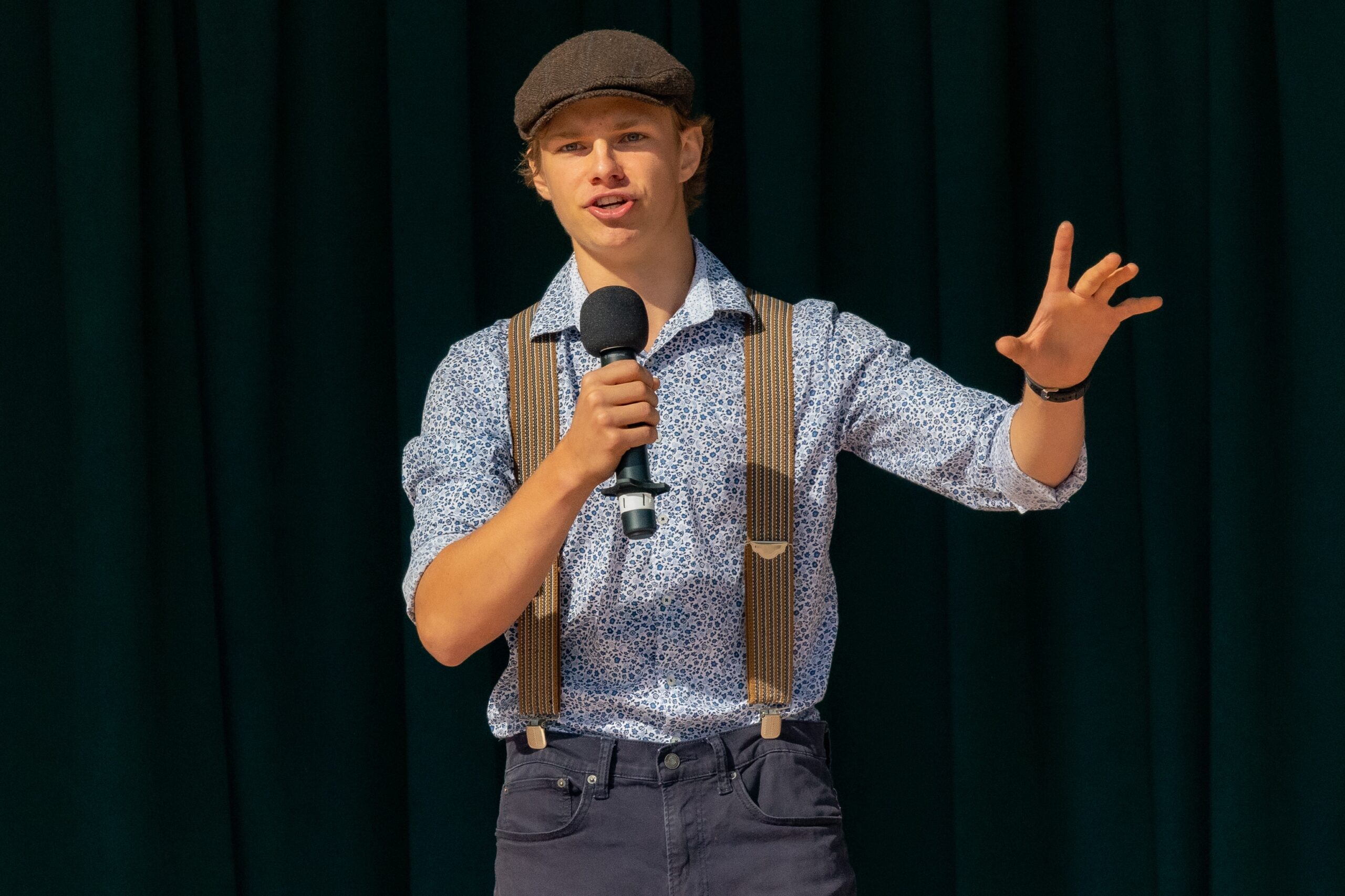 Centre: Antoine Yared (Romeo) and Members of the company in Romeo and Juliet.
